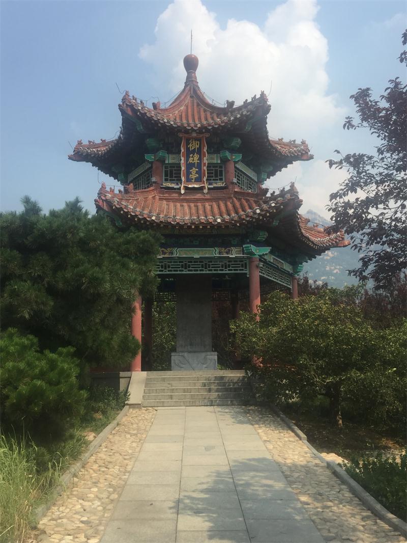該亭高 8 米, 六角重檐尖頂 ,亭內(nèi)置“ 御碑”, 碑高 3.15米, 寬 1.10 米, 厚 0.37米, 清代風(fēng)格。碑刻康熙四十二年御制詩一首, 作者是清圣祖康熙皇帝, 名玄燁。目前這里已成為泰山廣場(chǎng)的一大文化景點(diǎn)。